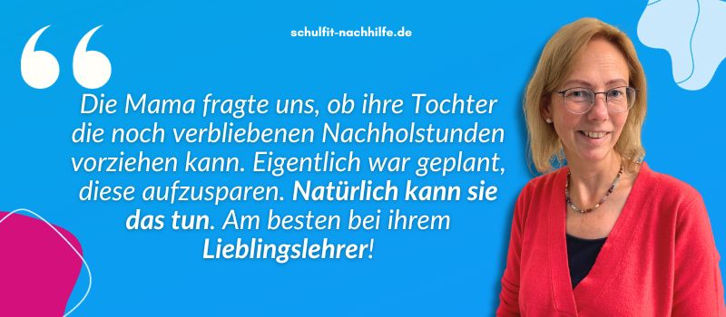 Viele Familien kennen die Herausforderung, Beruf und Unterstützung beim Lernen zu vereinbaren. Nachhilfe ist deshalb weit mehr als reine Unterstützung in der Krise. Sie ist eine Investition in langfristigen schulischen und persönlichen Erfolg und verschafft Eltern die Sicherheit, dass ihr Kind professionell begleitet wird. Regelmäßige Nachhilfe bietet klare Strukturen und gezielte Prüfungsvorbereitung. Durch individuelle Förderung entwickeln Kinder Freude am Lernen und bauen Lernblockaden ab.